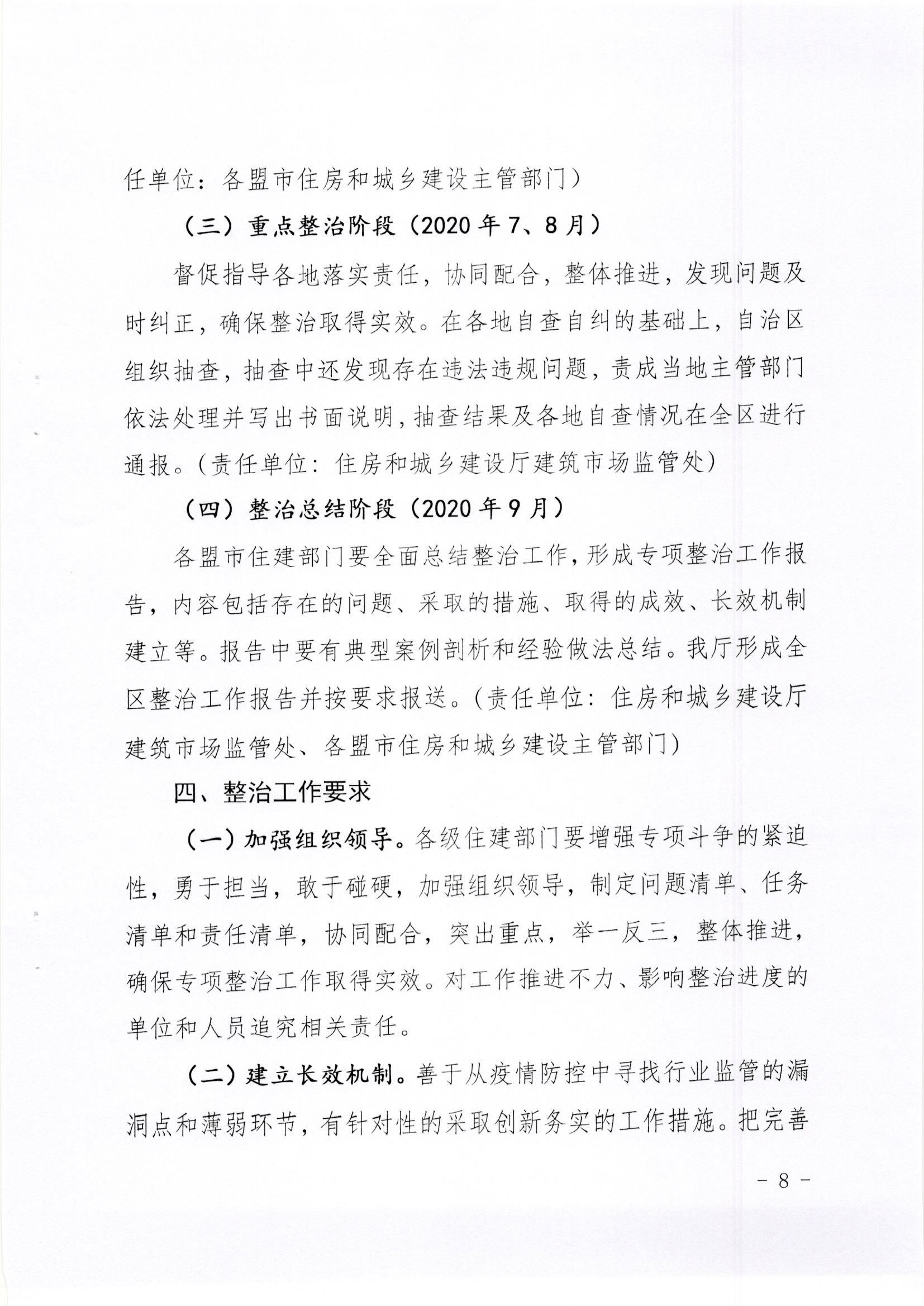 關(guān)于印發(fā)《內(nèi)蒙古自治區(qū)住房和城鄉(xiāng)建設(shè)廳2020年工程建設(shè)領(lǐng)域亂象整治工作方案》的通知