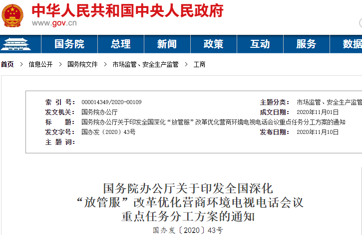 近日,國務院辦公廳印發(fā)《全國深化“放管服”改革優(yōu)化營商環(huán)境電視電話會議重點任務分工方案》(以下簡稱《方案》),對下一階段深化“放管服”改革優(yōu)化營商環(huán)境工作作出部署。