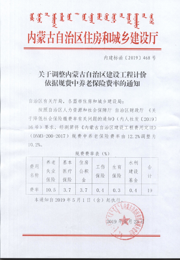關(guān)于調(diào)整內(nèi)蒙古自治區(qū)建設(shè)工程計(jì)價(jià)依據(jù)規(guī)費(fèi)中養(yǎng)老保險(xiǎn)費(fèi)率的通知
