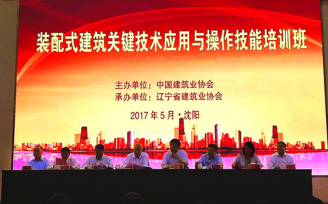 為貫徹落實(shí)《關(guān)于大力發(fā)展裝配式建筑的指導(dǎo)意見》(國辦發(fā)〔2016〕71號(hào))文件精神,大力推廣裝配式建筑,提升裝配式施工水平,培養(yǎng)具有工匠精神的裝配建造專業(yè)化技能隊(duì)伍,由中國建筑業(yè)協(xié)會(huì)主辦,遼寧省建筑業(yè)協(xié)會(huì)協(xié)辦的“裝配式建筑關(guān)鍵技術(shù)應(yīng)用與操作技能”培訓(xùn)班于5月17~19日在沈陽市隆重開班。中國建筑業(yè)協(xié)會(huì)副會(huì)長兼秘書長吳濤,遼寧省建筑業(yè)協(xié)會(huì)會(huì)長范越林、副會(huì)長兼秘書長孟寶良等領(lǐng)導(dǎo)和專家出席開班儀式。中國建筑業(yè)協(xié)會(huì)副秘書長王秀蘭主持開班儀式。