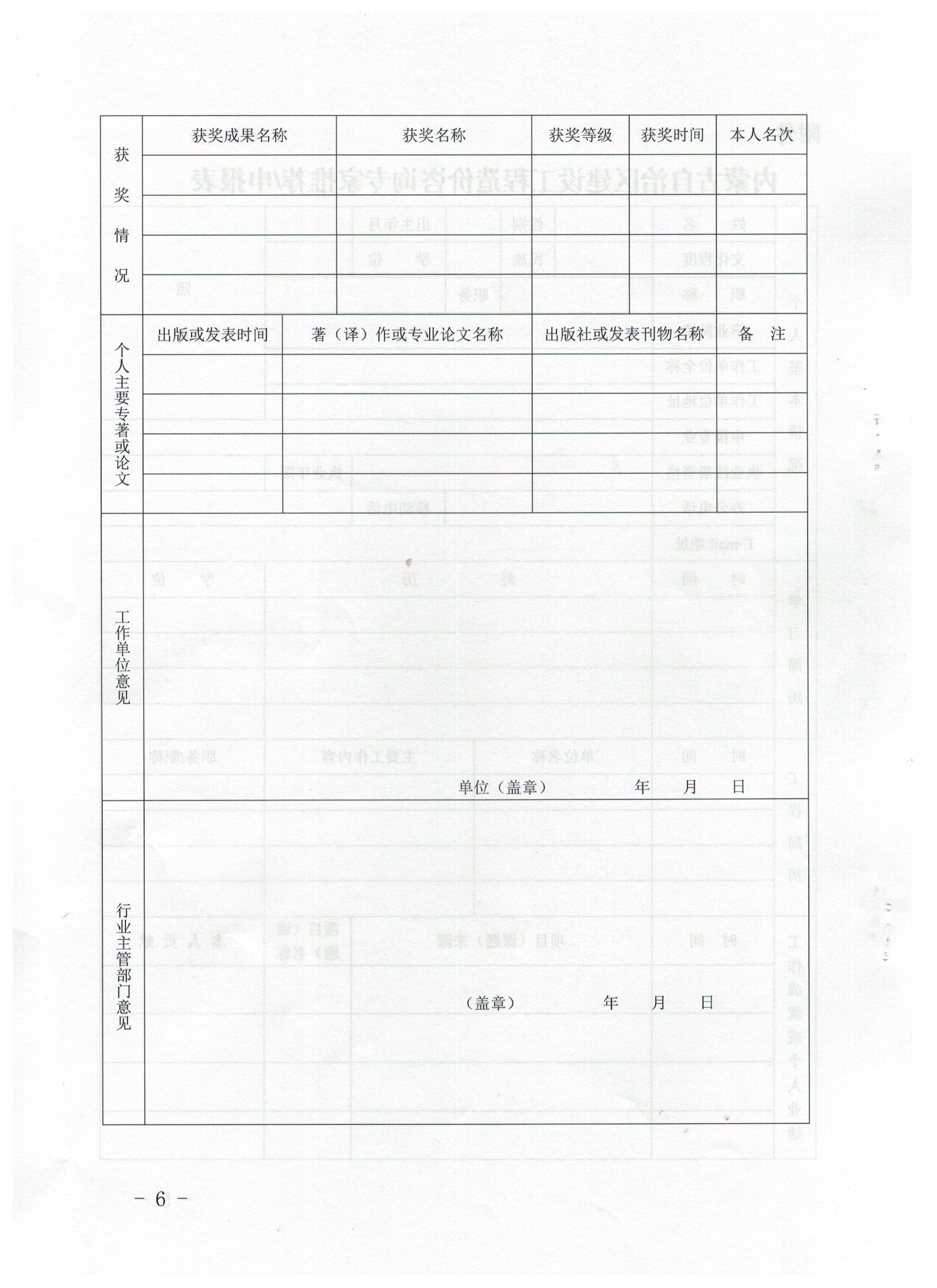 附件:內(nèi)蒙古自治區(qū)建設工程造價咨詢專家推薦申報表..docx