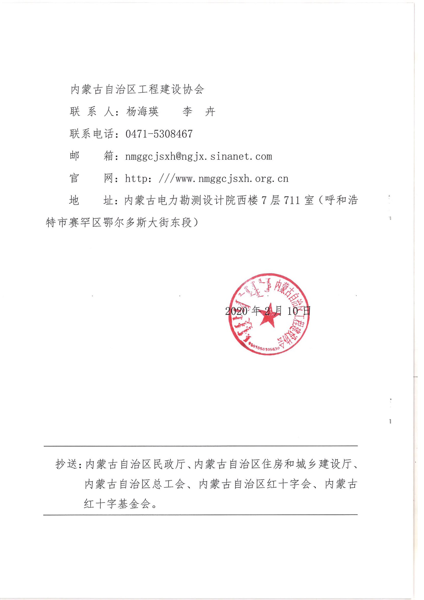 六、2月10日發(fā)出內(nèi)蒙古自治區(qū)工程建設(shè)協(xié)會《關(guān)于為防控疫情捐贈款物的倡議書》。
