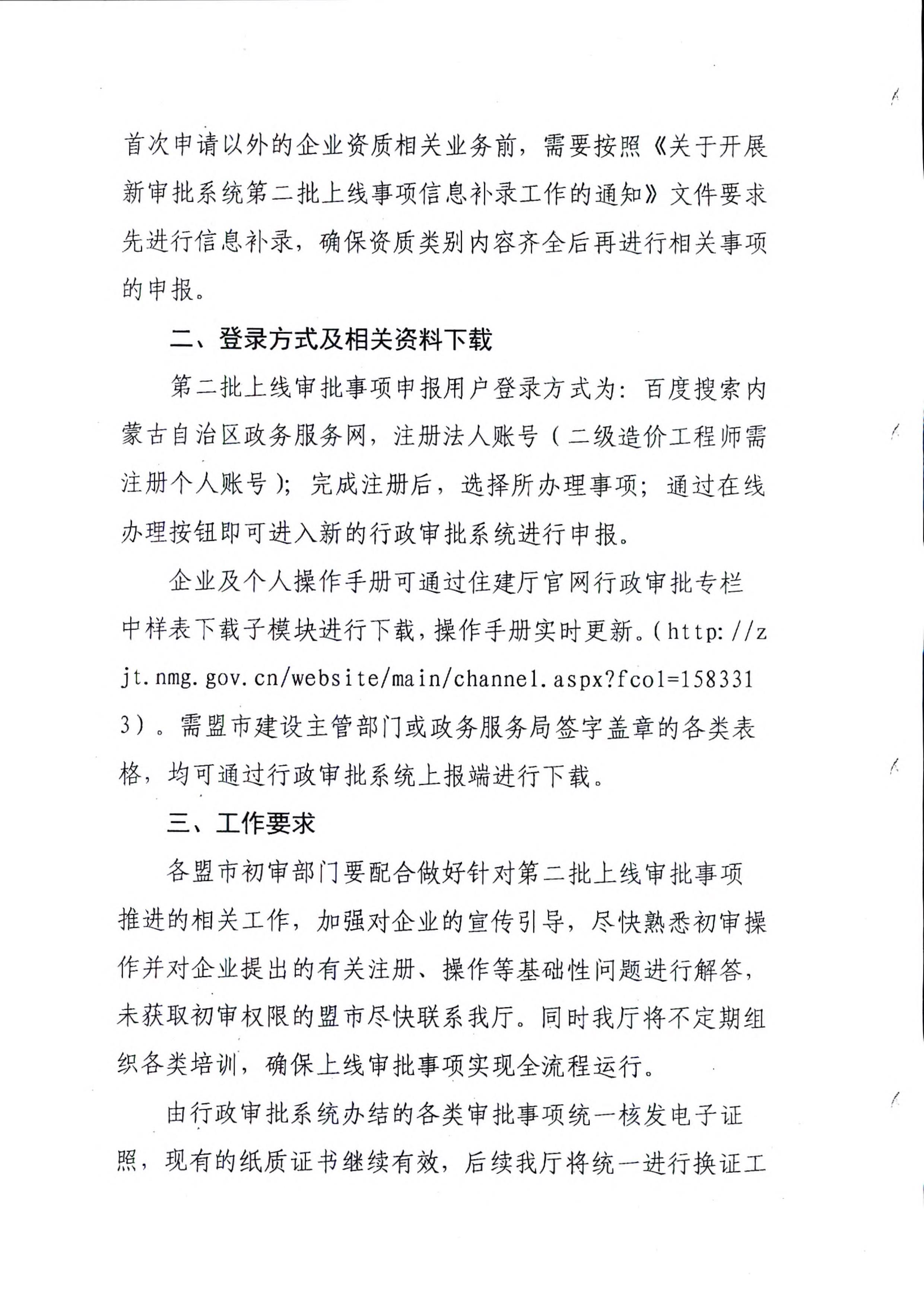 內(nèi)蒙古自治區(qū)住房和城鄉(xiāng)建設(shè)廳關(guān)于行政審批系統(tǒng)第二批行政審批事項(xiàng)上線試運(yùn)行的通知